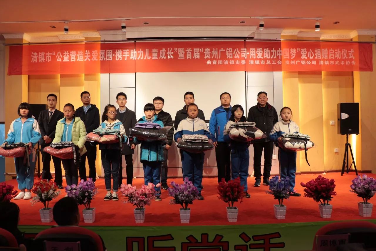 1月4日上午,共青團清鎮市委聯合市總工會、廣東省廣鋁公益基金會、貴州廣鋁公司、市武術協會在流長民族中學,舉行清鎮市“公益營造關愛氛圍·攜手助力兒童成長”暨首屆“貴州廣鋁公司·用愛助力中國夢”愛心捐贈啟動儀式,為留守兒童送去溫暖。