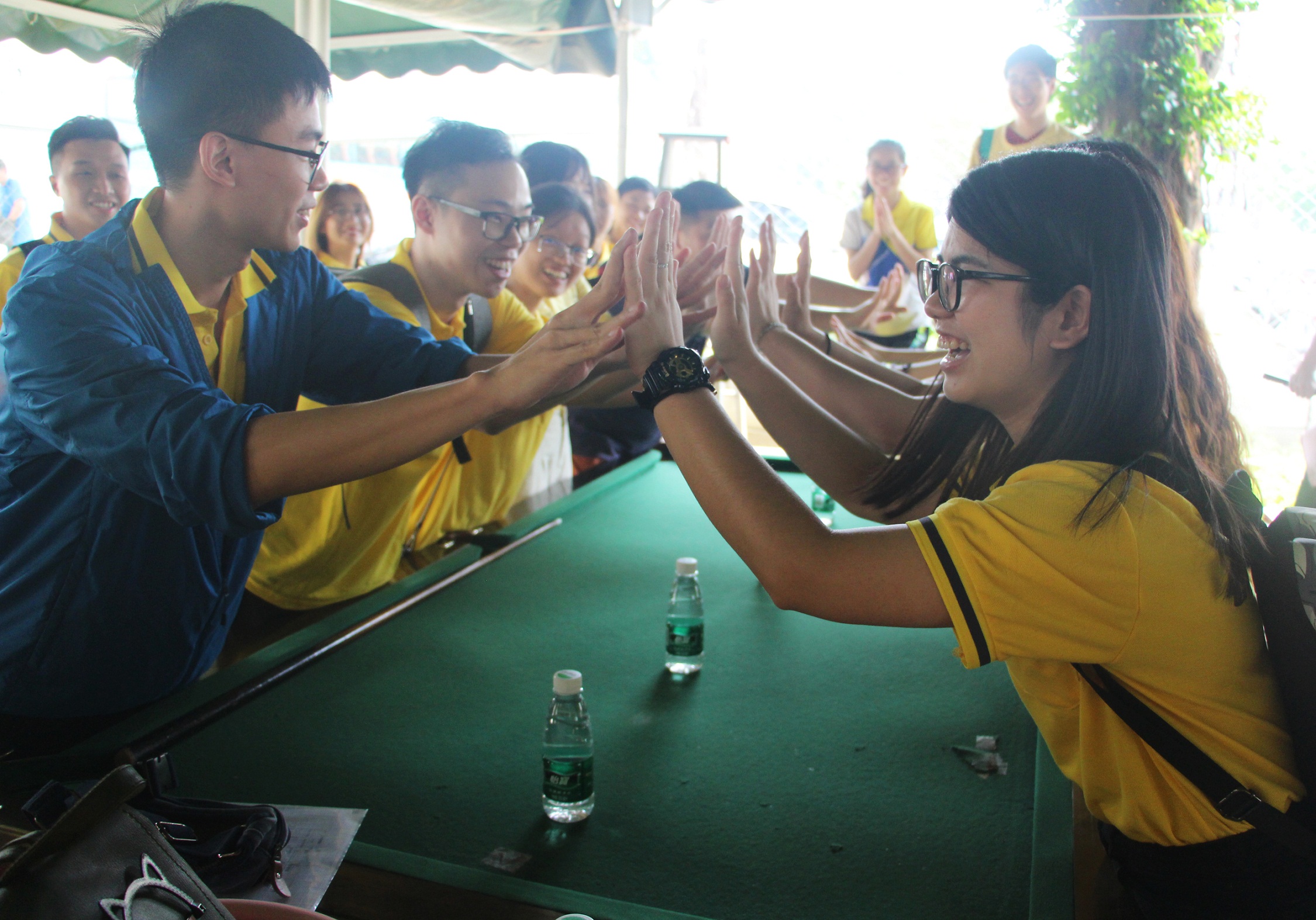 經過多日連綿的陰雨,5月11日早上終于出現久違的陽光。廣鋁小黃人大部隊到達番禺大夫山后,以小組為單位進行了“猜拳誰快”和“搶水瓶”游戲,挑戰大家的反應力?;顒娱_展過程中各小組激情盎然、招數齊出,戰況激烈。最后集團本部第二小組所向披靡,在兩個游戲中順利勝出,贏得“快手魔王”稱號和兩份精美的禮品。