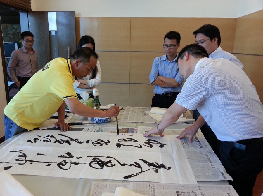 28日下午2時(shí),書法比賽正式開始,首先開始的是鋼筆書法,各個(gè)參賽同仁都使出自己的看家本領(lǐng),勾勒各自的創(chuàng)作,不到半小時(shí)一篇篇鋼筆字作品就此問世。鋼筆字作品里面不乏佳作,書寫手法有正楷的、隸書的、小篆等。接著,萬(wàn)眾期待的毛筆書法開始了,參賽者們摩拳擦掌已久,對(duì)創(chuàng)作內(nèi)容早已胸有成竹,只見廣鋁幕墻有限公司郭鴻杰正筆走龍蛇揮毫出狂草大作,主題立意和筆尖功夫皆為上乘。在其完成大作后,向大家介紹到他所用的毛筆已有13年的歷史了。書生指尖的筆,猶如劍客手中劍,十年磨一劍,高超的技藝需要漫長(zhǎng)的時(shí)間積累,終獲大成。正如廣鋁集團(tuán)企業(yè)自身一樣,專注二十一年,全力打造“百年廣鋁”品牌。貴州廣鋁也在當(dāng)天同步進(jìn)行書法比賽活動(dòng),藏龍臥虎的貴州廣鋁也是佳作涌現(xiàn),令人津津樂道。