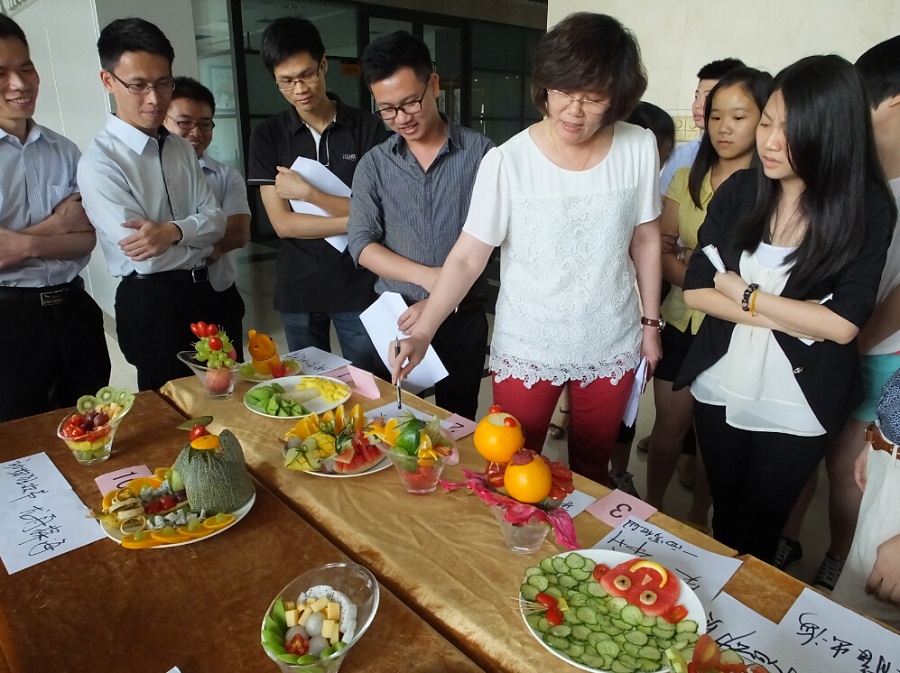 下午三點(diǎn),比賽在總部一樓大廳正式開始。在主持人的一聲令下,參賽選手挑選自己需要的材料后立即投入到比賽之中。盡管不是專業(yè)的廚師,但選手們依然充滿熱情,展現(xiàn)出自己心靈手巧和別出心裁的一面。選手們在享受比賽的樂趣之余也不忘伸出友誼之手,面對對手交換水果、請求幫助的要求,他們同樣慷慨相助。比賽中,參賽選手完美配合,將團(tuán)隊(duì)協(xié)作發(fā)揮到淋漓盡致,一個(gè)多小時(shí)后,一盤盤色香味俱全的水果拼盤紛紛出爐。最終,企管事業(yè)部鄧雯雯和譚鴻玲奪得本次比賽冠軍,營銷服務(wù)處吳小燕和周素歡獲得二等獎(jiǎng),企管事業(yè)部周艷華和黃詩敏獲得三等獎(jiǎng),結(jié)算事業(yè)部江潔玲和周艷妃獲得最佳創(chuàng)意獎(jiǎng)。