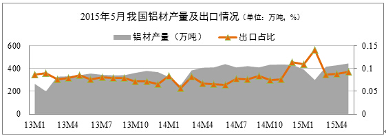 發(fā)稿時(shí)間:2015-07-17鋁材市場(chǎng)保持較快增長(zhǎng)。監(jiān)控?cái)?shù)據(jù)顯示,自3月以來(lái),我國(guó)鋁材月度產(chǎn)量均保持兩位數(shù)的增長(zhǎng)速度,其中5月份全國(guó)鋁材產(chǎn)量444萬(wàn)噸,累計(jì)同比增長(zhǎng)10.7%,增幅環(huán)比回落1.6個(gè)百分點(diǎn)。從區(qū)域分布上看,山東、河南以及廣東仍然保持鋁材產(chǎn)量前三的位置,其中廣東5月份鋁材產(chǎn)量49萬(wàn)噸,全國(guó)占比11%,但同比增速較上月回落了6%,降幅收窄0.3個(gè)百分點(diǎn)。