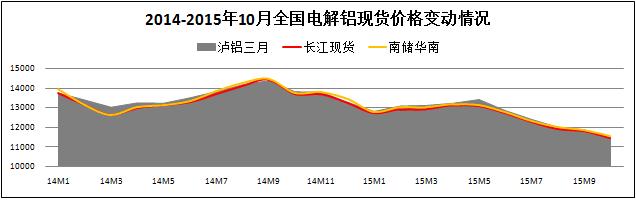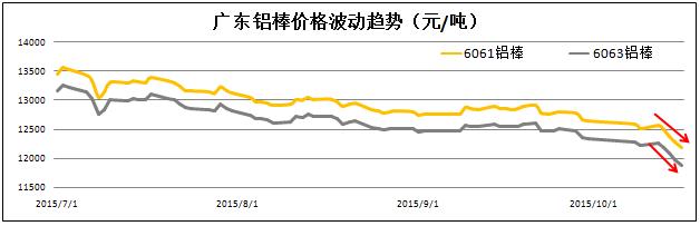 受全球鋁市疲態(tài)的影響,報(bào)告期內(nèi)我國(guó)鋁棒價(jià)格呈現(xiàn)出階段性大跌的異常現(xiàn)象。截至10月中旬,廣東6063型鋁棒價(jià)格下浮至10995元/噸,月化環(huán)比下降11.1%。鋁棒價(jià)格大幅下浮的另外一個(gè)主要原因是鋁型材市場(chǎng)需求在原本疲憊的環(huán)境下,原料需求進(jìn)入季節(jié)性淡季。