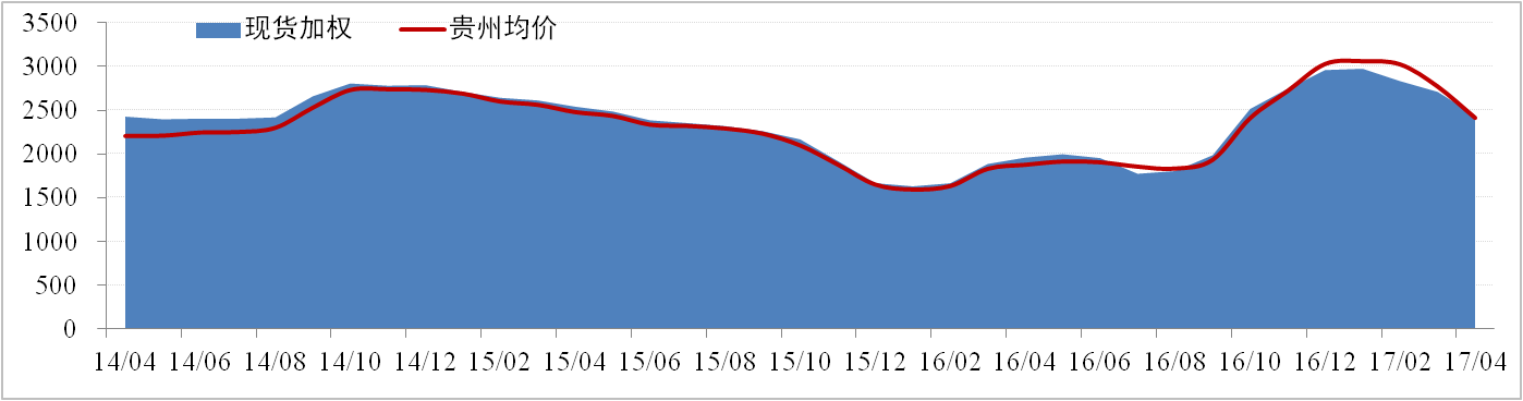 全國現貨價格方面,5月18日全國氧化鋁現貨加權價為2,286元/噸,較月初環比下降4.67%。貴州氧化鋁現貨加權價為2,260元/噸,較月初環比下降4.67% 。4月份北方價格快速下滑致使西南地區庫存壓力加快,5月西南地區氧化鋁現貨成交價格領跌與全國現貨價格。