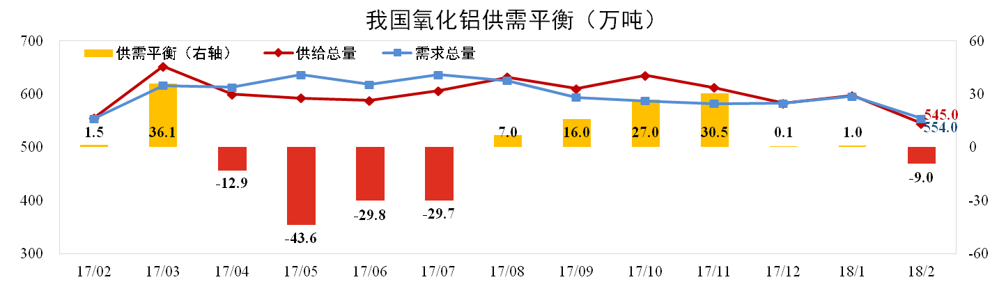 發稿時間:2018-03-23一、氧化鋁供需小幅短缺