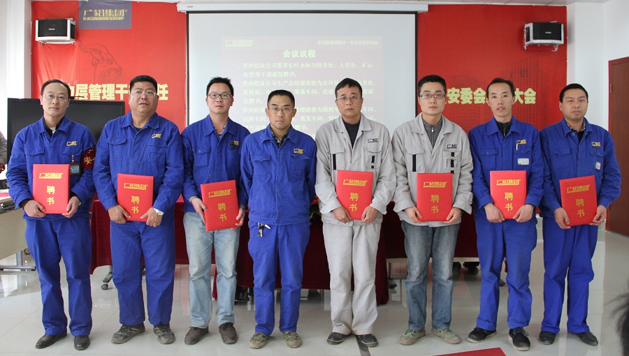發稿時間:2015-01-152015年1月13日,貴州鋁業公司和貴州礦業公司2015年中層管理干部聘任大會暨安全環保責任人任命大會在貴州鋁業公司綜合辦公樓五樓會議室隆重舉行。公司董事長葉永標、礦業公司總經理張戰旗以及生產總經理唐俊分別為2015年度中層管理干部頒發了聘書。
