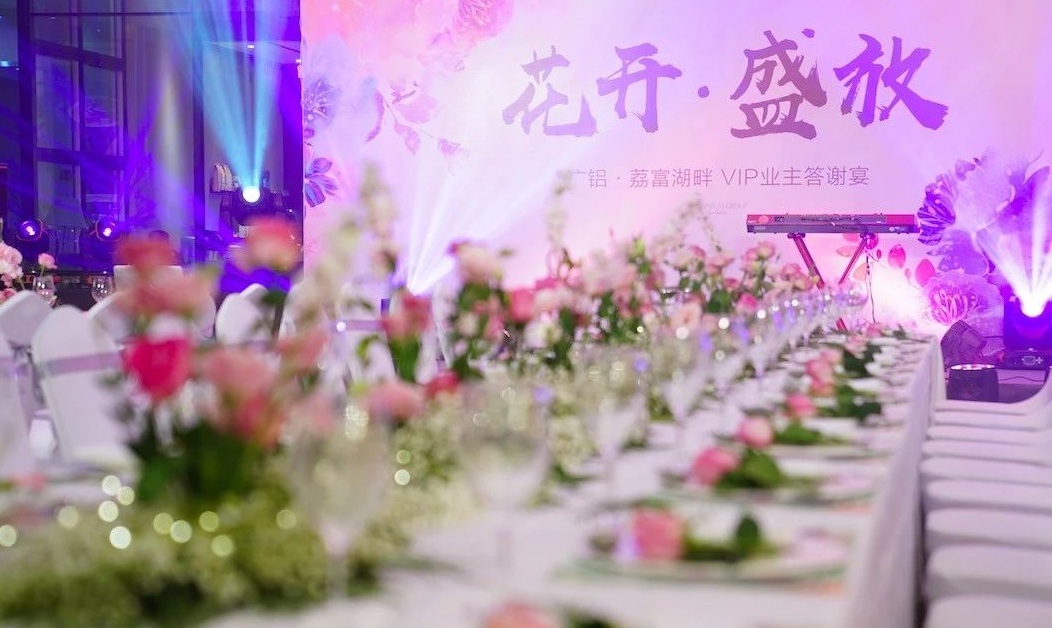 家居大變身活動啟動儀式圓滿結束后,荔富湖畔售樓部迅速變身媲美網紅拍照打卡地的大花園,“花開·盛放”VIP業主答謝宴隆重開席。
